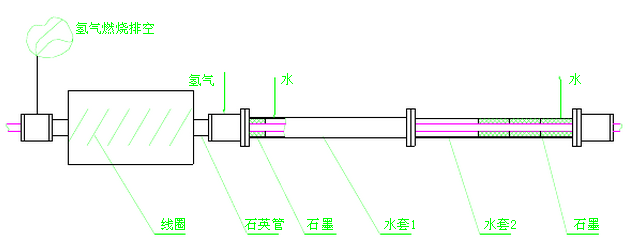 三 工藝特點: 將不銹鋼焊管用感應(yīng)加熱的方式加熱到固溶所需溫度(304材質(zhì)1040℃),并在以氫氣為保護氣體的密封裝置中進行固溶化處理,改善焊縫的組織結(jié)構(gòu)并消除應(yīng)力,以增強抗腐蝕性能;用氫氣作保護氣體可使固溶化處理后的焊管變得光亮并加快冷卻速度。 不銹鋼焊管加熱到固溶溫度后的冷卻采用間接冷卻方式,以保持焊管光亮。 其加熱與冷卻部分設(shè)備示意圖如下: