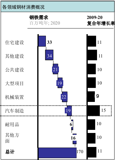 圖表2 印度國內(nèi)各領(lǐng)域鋼材消費(fèi)情況